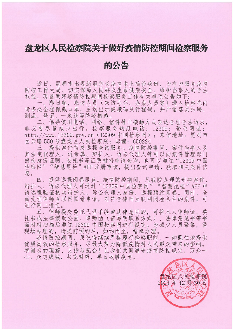 盘龙区beat365上不去_365bet中文官方网站_Bet体育365提款流水关于做好疫情防控期间检察服务的公告