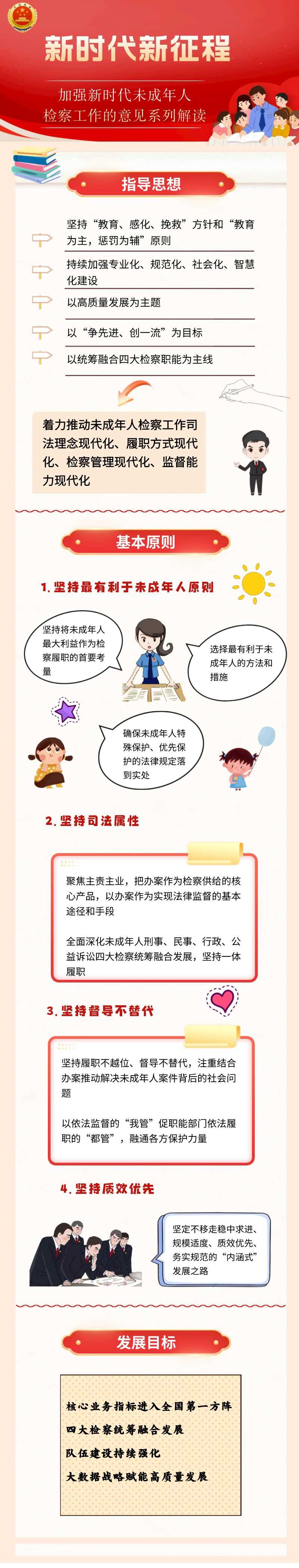 未成年人是祖国的未来,民族的希望。进入新时代新发展阶段,随着新修订的未成年人保护法、预防未成年人犯罪法实施,对未成年人检察工作提出了新的更高要求和更大期望。为全面提升未成年人检察工作水平,近日,河南省beat365上不去_365bet中文官方网站_Bet体育365提款流水出台《关于加强新时代未成年人检察工作的意见》,依法能动履职,以新思路、新举措回应人民群众对未成年人保护工作的新要求、新期待,为新时代河南未成年人检察工作绘制出新画卷、开启新征程。即日起,河南检察官微推出【新时代新征程|加强新时代未成年人检察工作的意见系列解读】专题,未来几年,河南未成年人检察工作的指导思想和基本原则是什么?今天咱们一起来划重点——