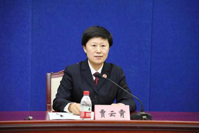 省检察院政治部宣传处处长贾云霄主持发布会。
