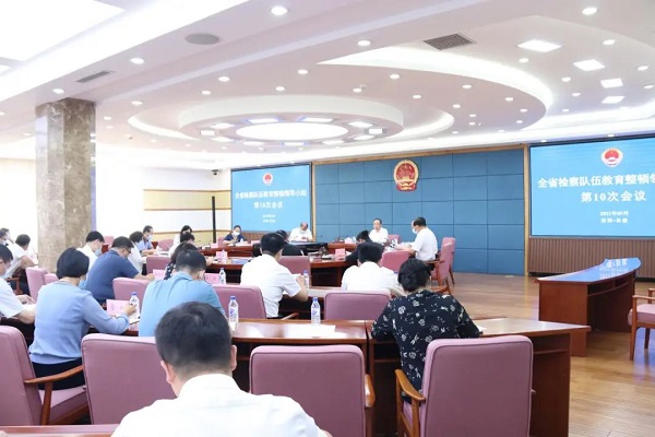 9月8日,吉林省检察院召开全省检察队伍教育整顿领导小组第10次会议,全面贯彻中央政治局委员、中央政法委书记郭声琨在吉林调研讲话指示精神,深入学习中央第五督导组组长冷溶、省委书记景俊海在中央督导组见面会上的讲话精神和全省政法队伍教育整顿领导小组办公室主任会议、全省第二批教育整顿工作汇报会议精神。省检察院党组书记、检察长、全省检察队伍教育整顿领导小组组长尹伊君主持会议,并就贯彻落实作出具体部署。