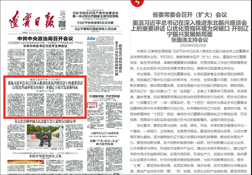 媒体报道(《辽宁日报》2020年9月29日第1版)
