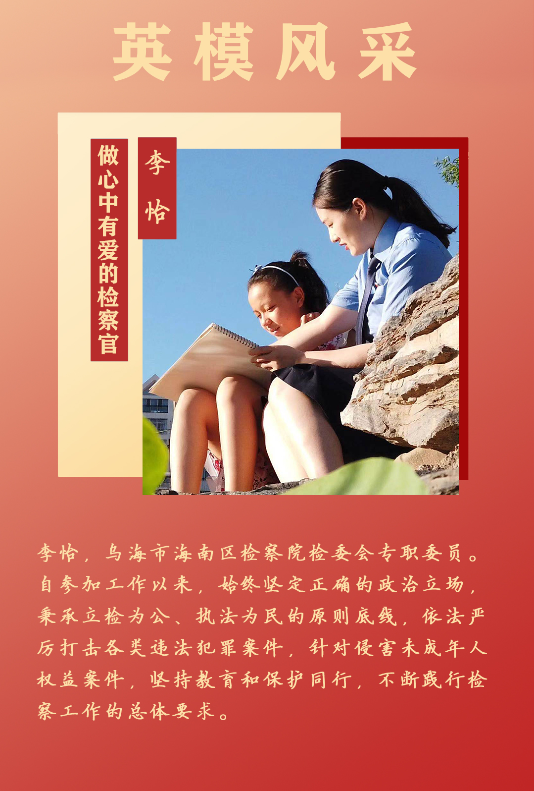 李怡同志忠诚干净、恪尽职守、求真务实、精益求精,受到了上级和群众的一致认可,先后获得先进个人,优秀志愿者,最高beat365上不去_365bet中文官方网站_Bet体育365提款流水“关于全国巡讲活动表现突出个人”的通报表扬、自治区检察院给予的“个人嘉奖”等多项荣誉。