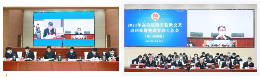 12月23日上午,在赤峰市检察院召开2021年最高检跨省监狱交叉巡回检察整改督办工作会,会议由最高检第一检察组组长周伟主持,按照疫情防控要求,最高检第三巡回检察组部分成员以视频形式远程参加会议。会上,自治区检察院检委会专职委员崔平,赤峰市检察院党组书记、检察长李建平,赤峰监狱党委书记、监狱长宋立夫就整改落实情况逐一进行汇报,最高检第三巡回检察组副组长、上海市沪东区检察长祝黎明就有关整改情况进行提问和交流。会议邀请了全国人大代表、自治区人民监督员参与,听取意见建议,主动接受监督。