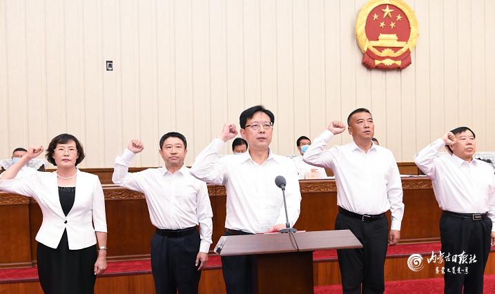 9月6日上午,自治区十三届人大常委会第二十九次会议举行了宪法宣誓仪式。自治区党委书记、人大常委会主任石泰峰主持并监誓。图为新任职人员在依法进行宪法宣誓。 内蒙古日报社融媒体记者 袁永红 摄
