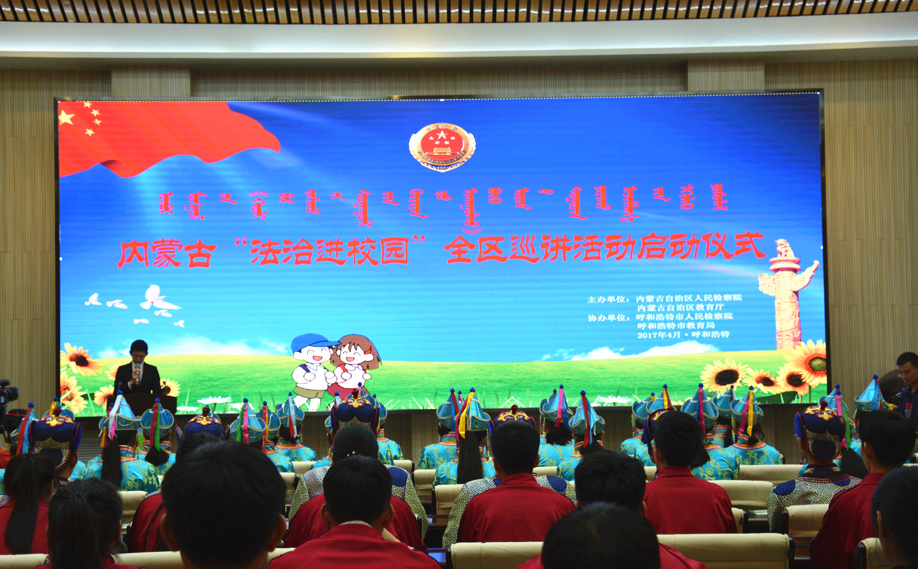 巡讲活动在“法治进校园”亮灯仪式中拉开帷幕。自治区检察院、自治区教育厅及相关单位领导和学生代表上台共同启动水晶球,标志着内蒙古“法治进校园”全区巡讲活动正式启动。
