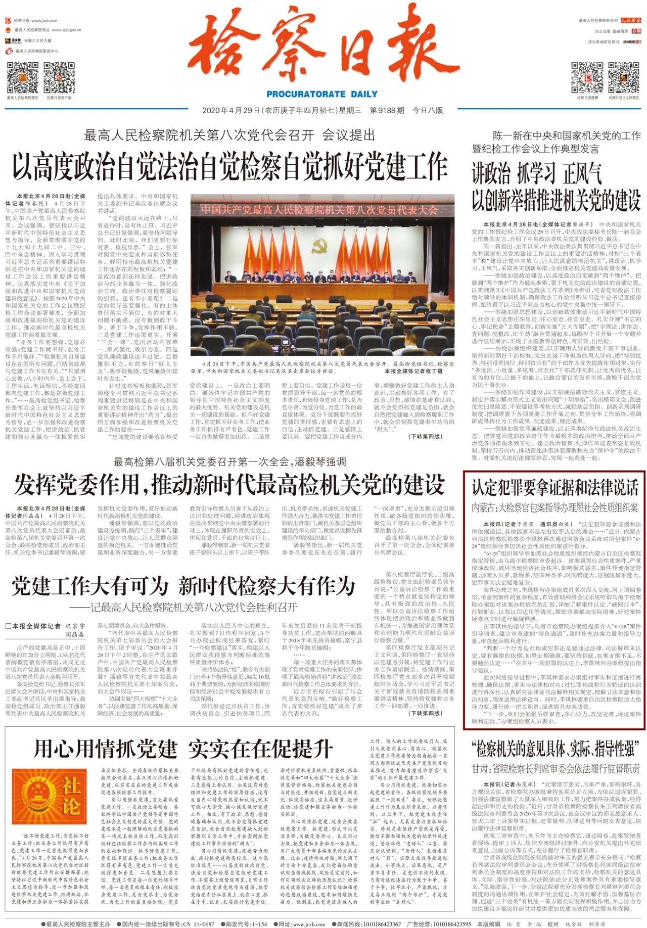 4月29日《检察日报》头版——认定犯罪要拿证据和法律说话