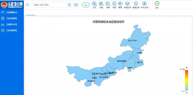 8月24日,全新的内蒙古自治区检察机关12309检察服务热线系统正式开通运行,自治区检察院及15个盟市地区(分)院12309检察服务呼叫中心同步上线运行,可为人民群众提供“法律咨询、程序引导、办理进展查询、控告申诉”等检察服务。
