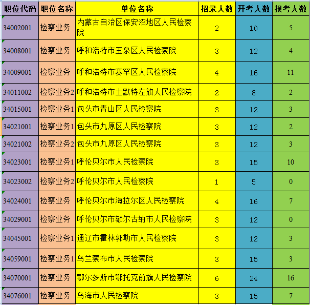3月20日,自治区党政群机关和参照公务员法管理单位2015年考试录用公务员和工作人员网上报名工作启动。目前网上报名和资格审核任务均已过半。截至3月24日晚,报考检察机关的考生共4272人,其中资格审查合格考生2963人;报考人数达到开考比例的职位有279个,占330个职位总数的84.5%。目前仍有部分岗位报考人数较少甚至无人报考(数据截至3月24日17:00 ):