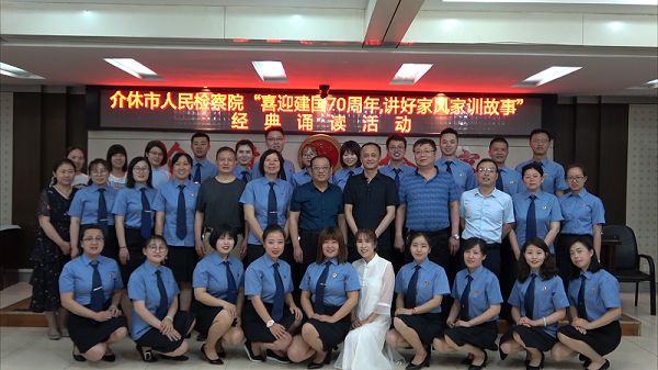 为进一步弘扬中华民族优秀传统文化和时代新风,培育和践行社会主义核心价值观,近日,介休检察院开展了以“喜迎建国70周年,讲好家风家训故事”为主题的经典诵读活动。