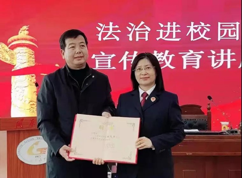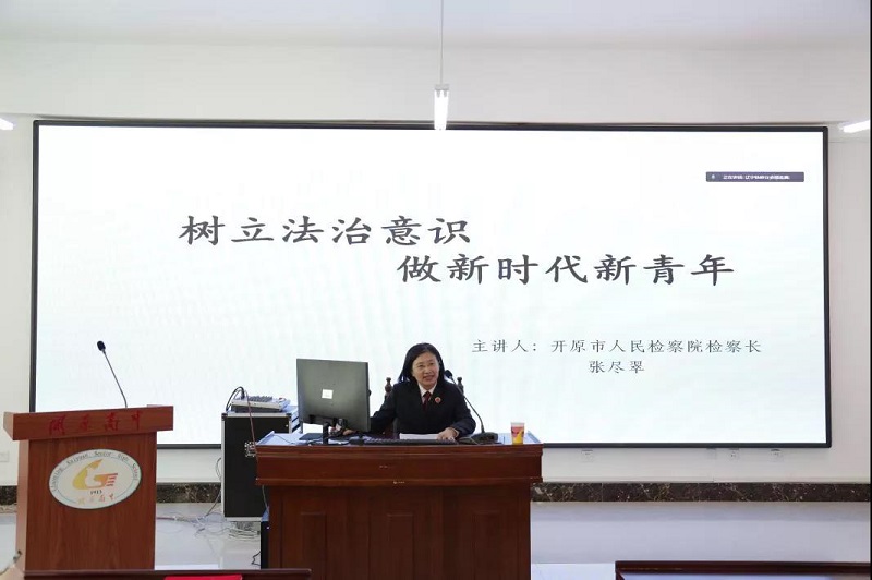 在授课前,开原市高级中学校长修平涛向张尽翠颁发开原市高级中学法治副校长聘书。张尽翠同志表示:担任开原高中法治副校长是自己的荣幸,同时也让自己感受到了责任的重大。在未来的工作中,自己一定会用实际行动履行好法治副校长的职责,为学校创建文明校园、平安校园、法治校园贡献自己的力量。